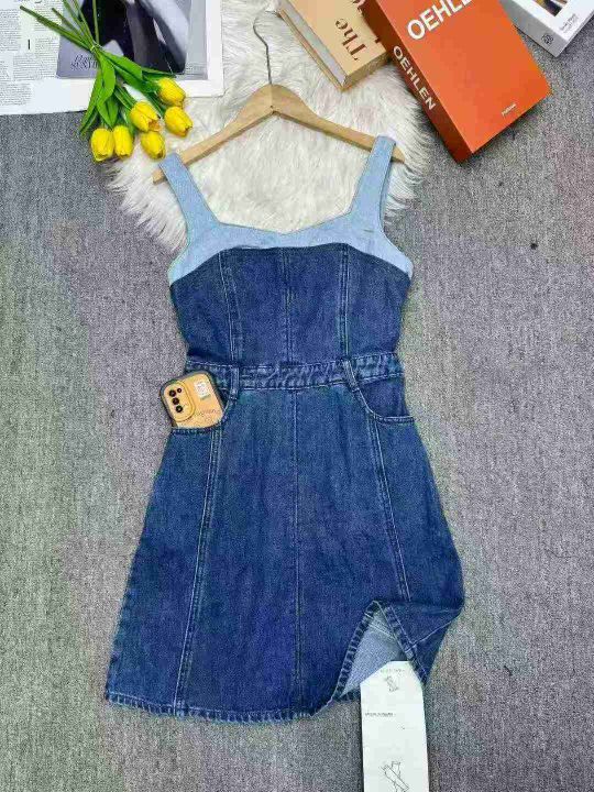 捡漏187条韩版拼色减龄收腰显瘦辣妹气质短款吊带牛仔连衣裙,独立包装,码数S-M码,S码裙长80厘米,做工精致,可入实体店,(货号0903#5)