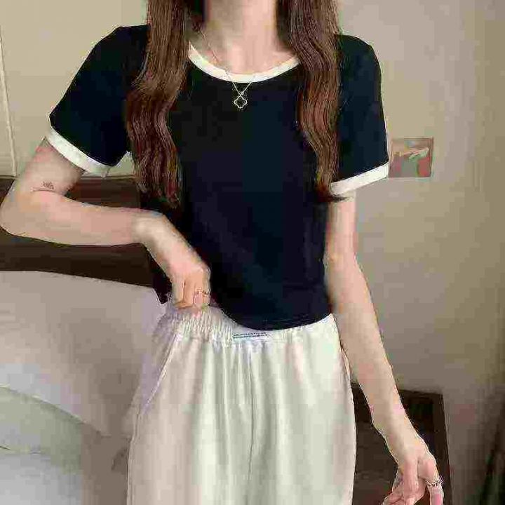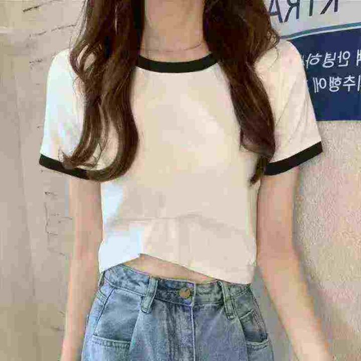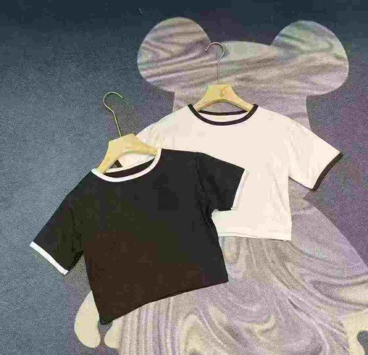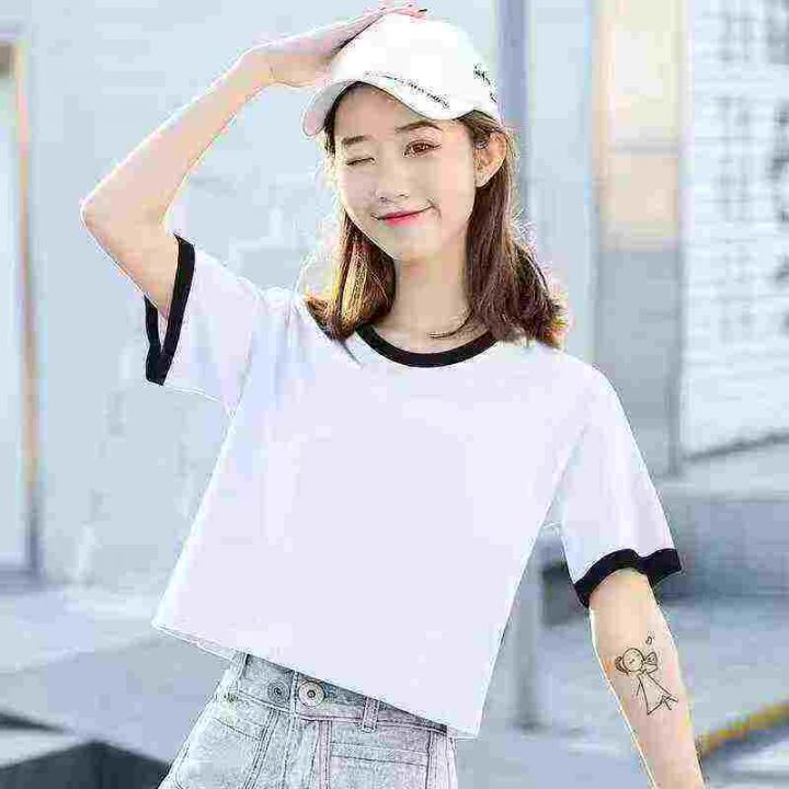 天猫在售款300件左右高品质95拉架纯棉靓妹撞色短款T恤,高弹力,单款两色,S-L,独立包装