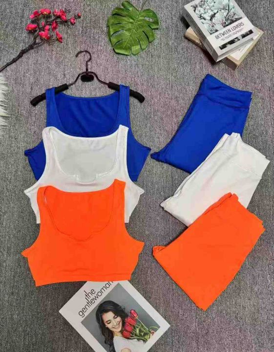 欧美爆款运动瑜伽服跑步健身锦纶吸湿排汗套装,55套左右,整款三色,高弹力,品质好,有独立包装。