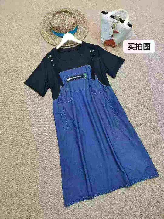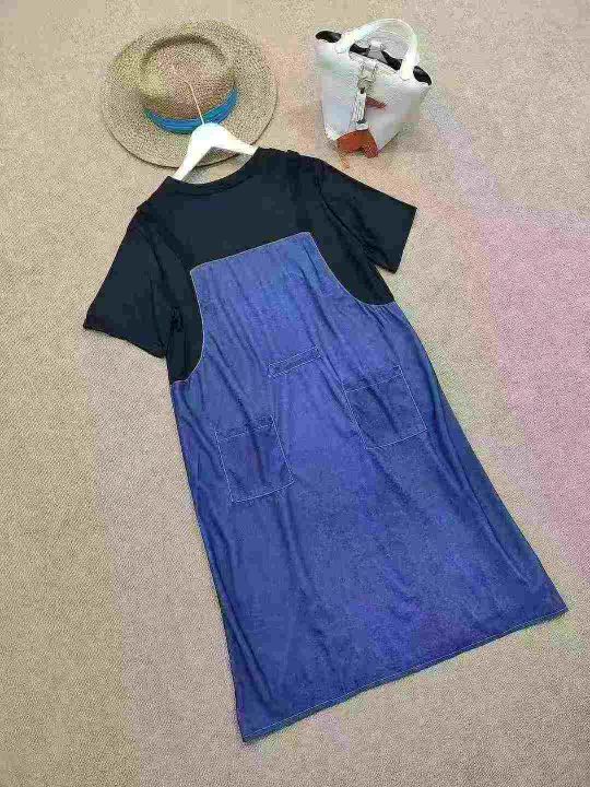 [月亮]:冰丝拼接仿牛仔休闲宽松连衣裙