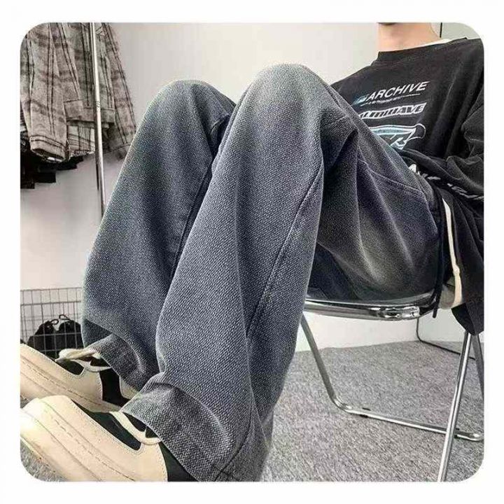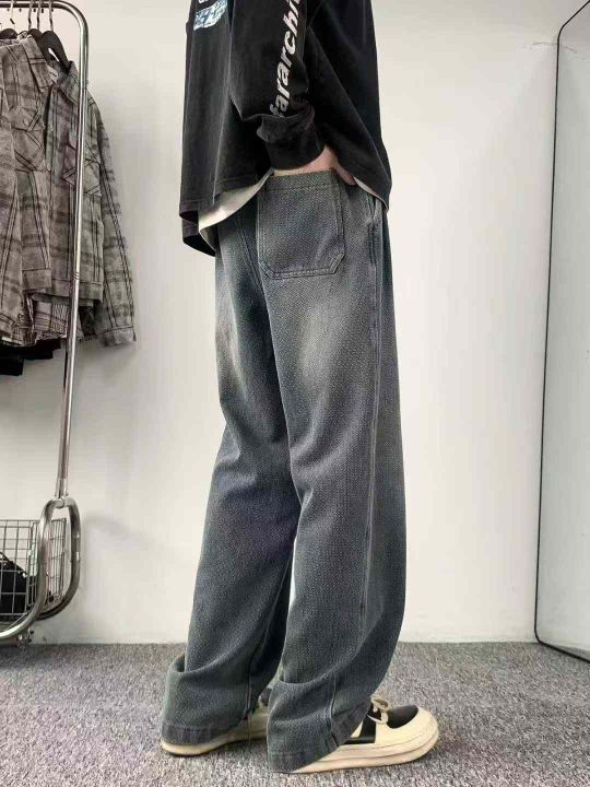 全清9.8春秋直筒毛边牛仔裤男裤脚拉链日系复古高街潮牌ins百搭工装牛仔裤...