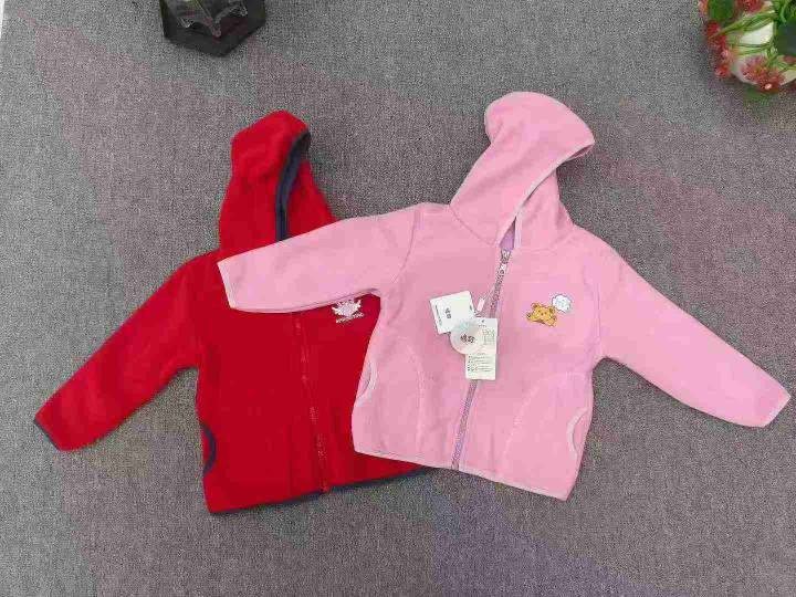 品牌童装摇粒绒带帽外套 数量2000件左右 尺码110--160 有三个品牌(史努比、巴拉巴拉、baby) 每个款都有四个颜色 可挑品牌出 独立包装带吊牌 货品干净整洁
