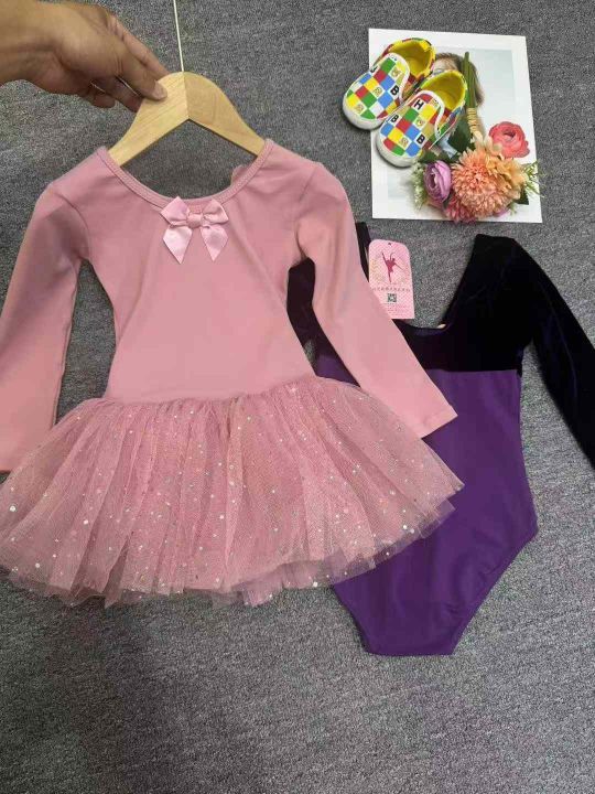 舞蹈服儿童女秋冬长袖练功服幼儿衣服中国舞跳舞蹈裙女孩芭蕾舞裙,独立包装,码数豆沙100 紫色110,数量90件左右,全清4.8元