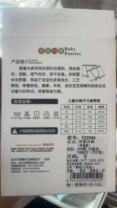 儿童平角内裤,104盒一盒两条,清货4元一盒。 ...