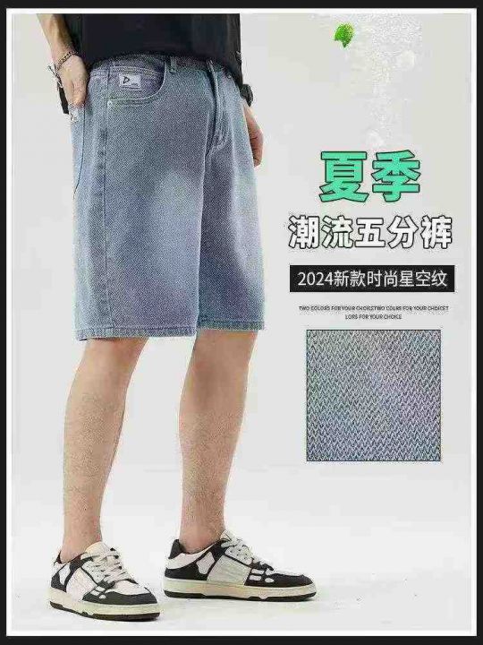 G632款,松紧腰牛仔短裤男新款潮牌高街直筒中裤新款休...
