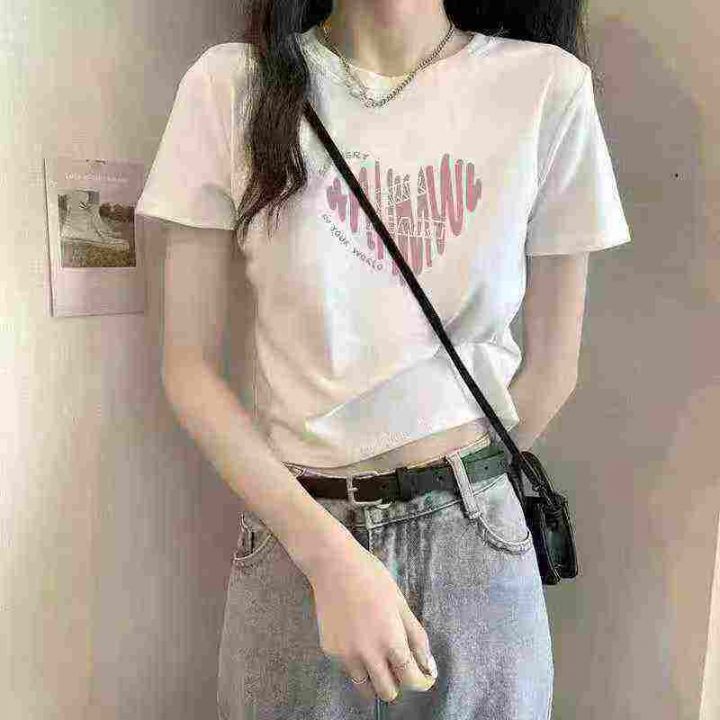 夏季新款设计款爱心印花韩版弹力修身不规则辣妹针织短袖小衫,独立包装均码面料柔软舒适弹力大,365件,全清5.9元超低价秒杀!分货加一!