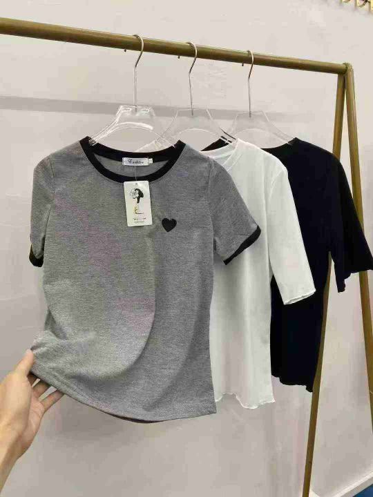 308件爱心刺绣圆领短袖上衣。两个整款,其中一款木耳边设计,面料柔软舒适。码数1-7,独立包装带吊牌,全清2.9