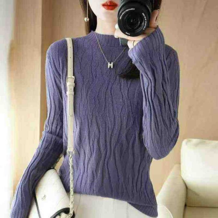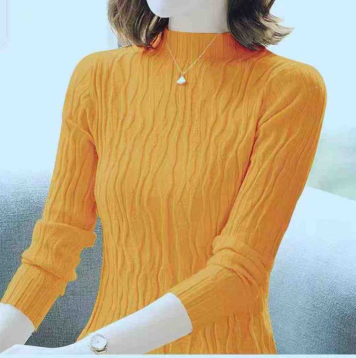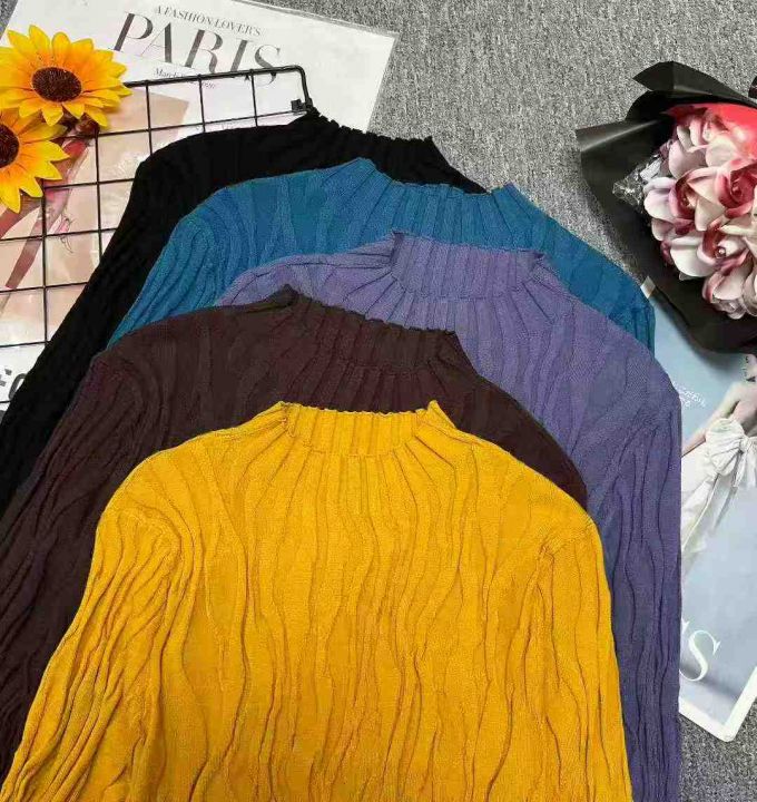 秋冬新款纯色文艺复古螺纹褶皱长袖半高领包芯纱套头毛衣,独立包装,均码面料软糯舒适弹力大,866件,全清6.9元超低价秒杀!分货加一!