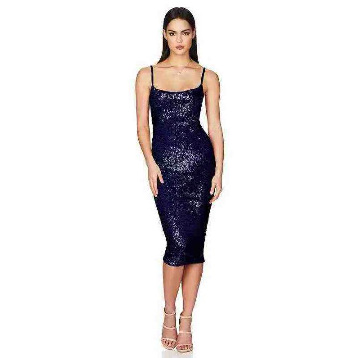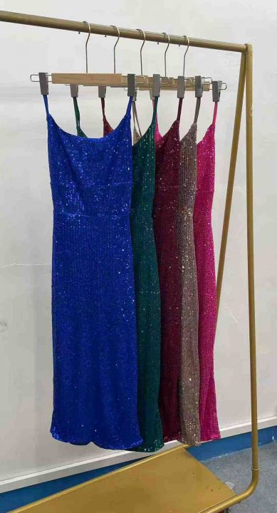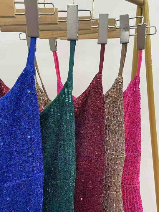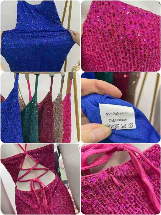180件重工亮片性感无袖露背吊带裙。图片款,后背绑带开叉设计,高弹力,品质非常好。码数XS一L,拉链式独立包装。