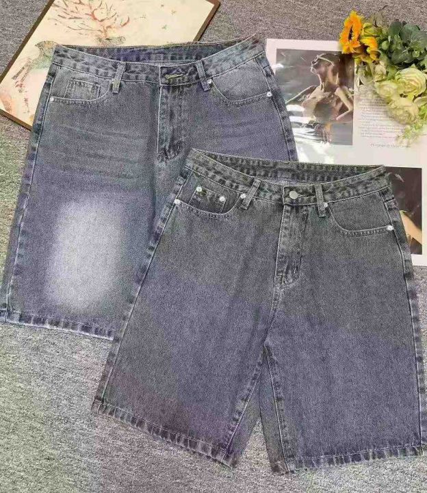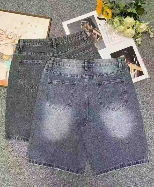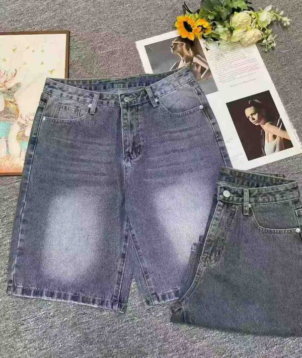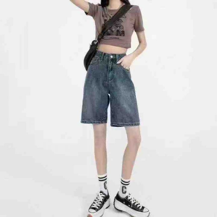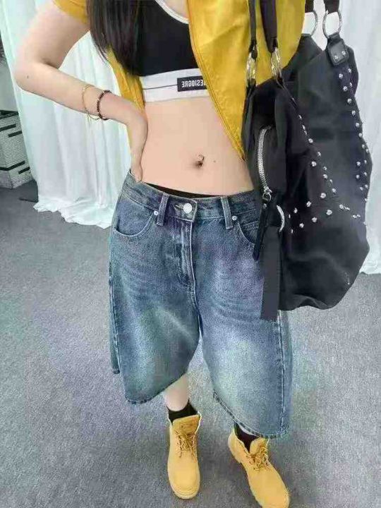 夏季新款洗水棉美式复古显瘦宽松五分牛仔中裤,独立包...