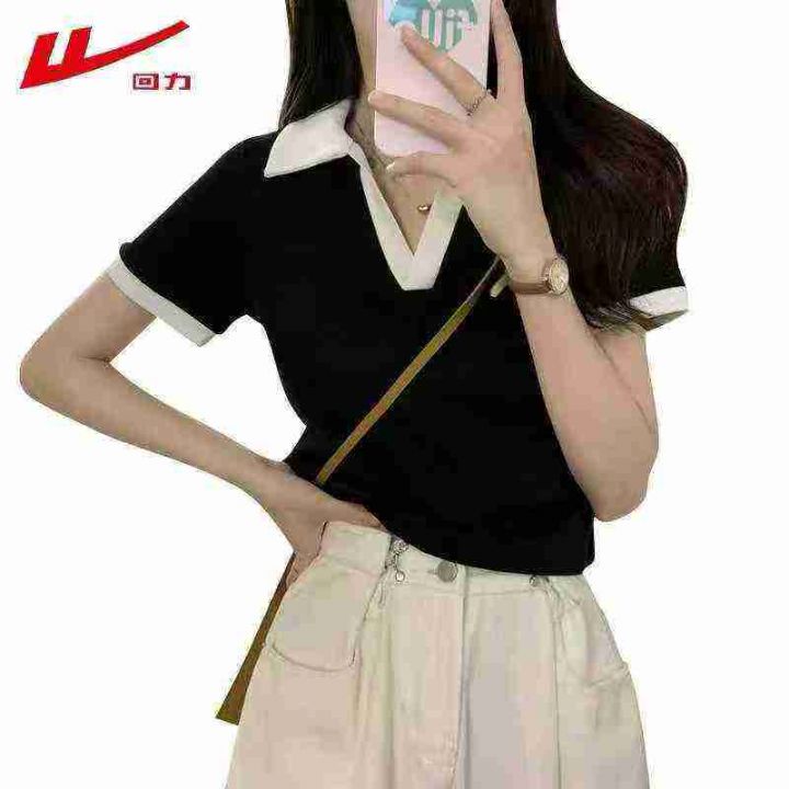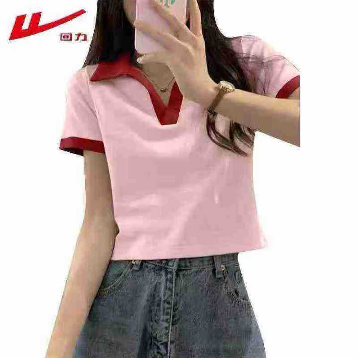清8.8分货➕1回力品牌2025夏季纯棉显瘦修身百搭翻领PO...