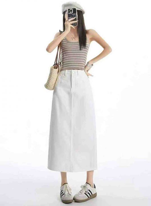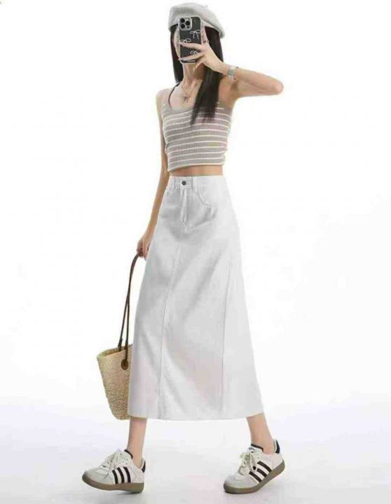 捡漏款,夏秋新款女装洗水棉高弹力半松紧腰牛仔半身裙...