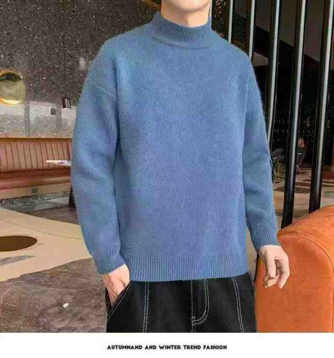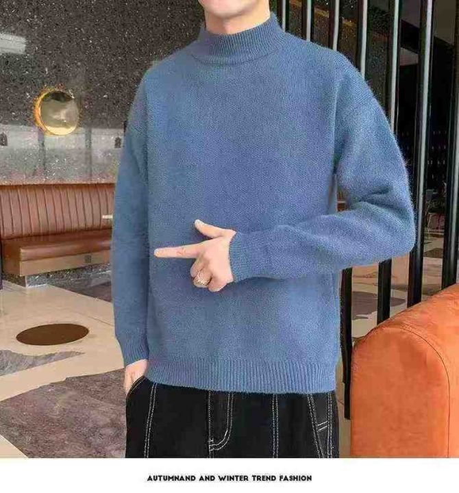秋冬新款加厚款半高韩版纯色北极绒套头毛衣,独立包装...