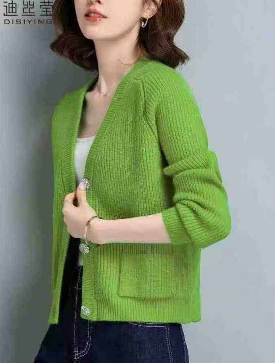 早秋新款V领宽松慵懒风针织毛衣开衫,独立包装,均码...