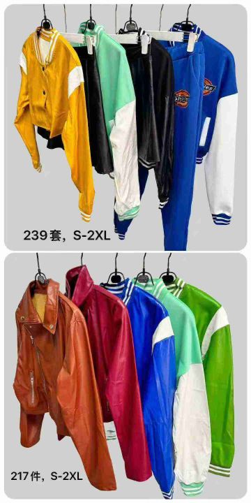 欧美时尚棒球服外套+棒球服套装+皮衣外套,数量239件,码数:S-2XL,品质好,有独立包装。