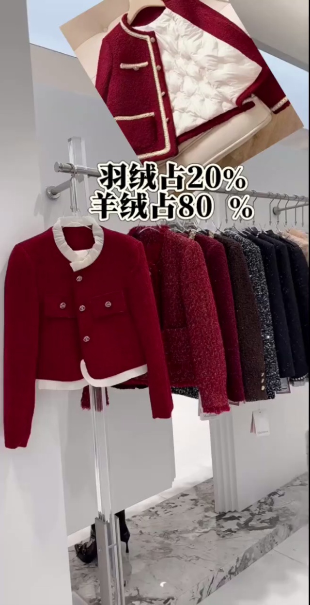 59.9羽绒服占20 %、羊绒占70 %2025新款,白鸭绒羽绒服小香风,高品质女装...