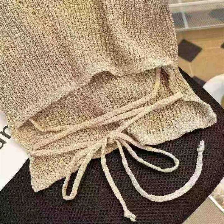 全清10.8元/清370件韩国定制早秋新款抽绳收腰针织罩衫...