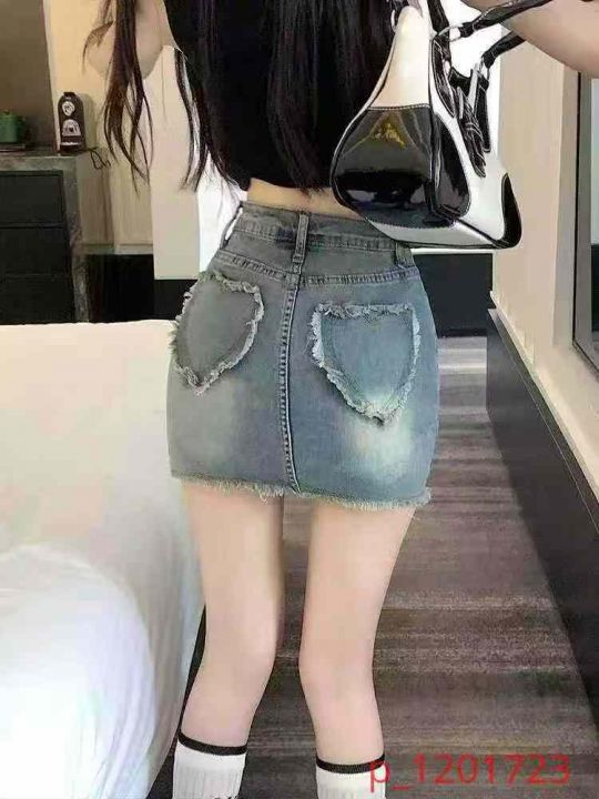 ☕️高弹力甜辣爱心牛仔半身裙女高腰显瘦a字包臀短款...