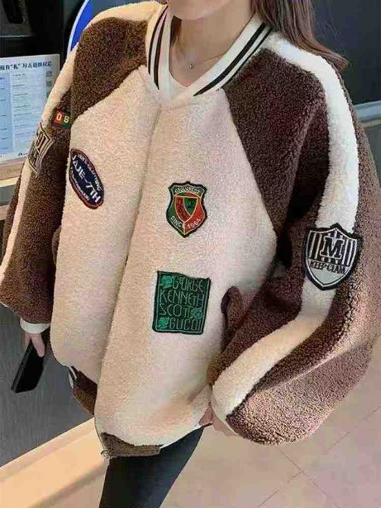 羊羔绒棒球服外套,加厚内里加绒(婴儿绒),独立包装...