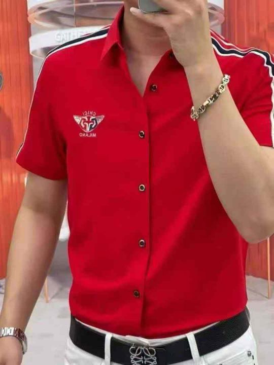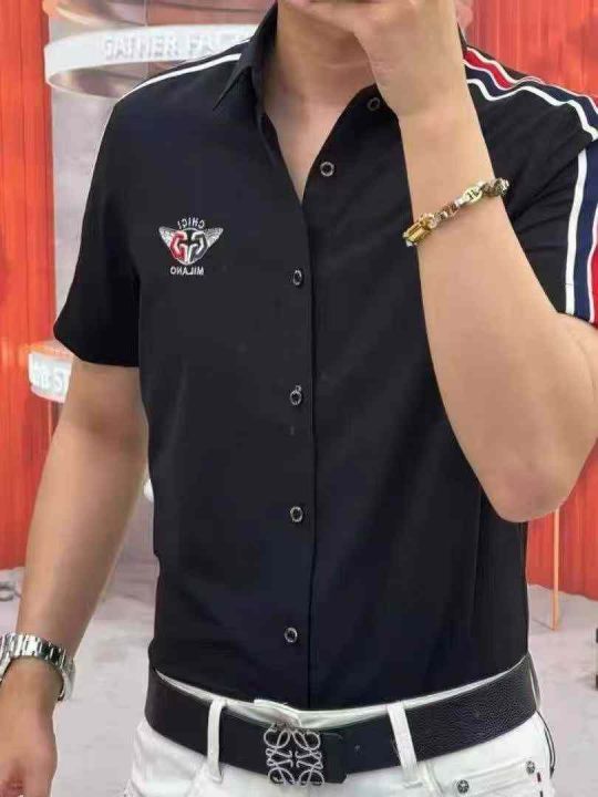 天猫在售款360件左右高品质高档男装潮牌时尚刺绣短袖衬衫,面料柔软垂感好,单款三色,M-4XL,独立包装带防伪扣吊牌