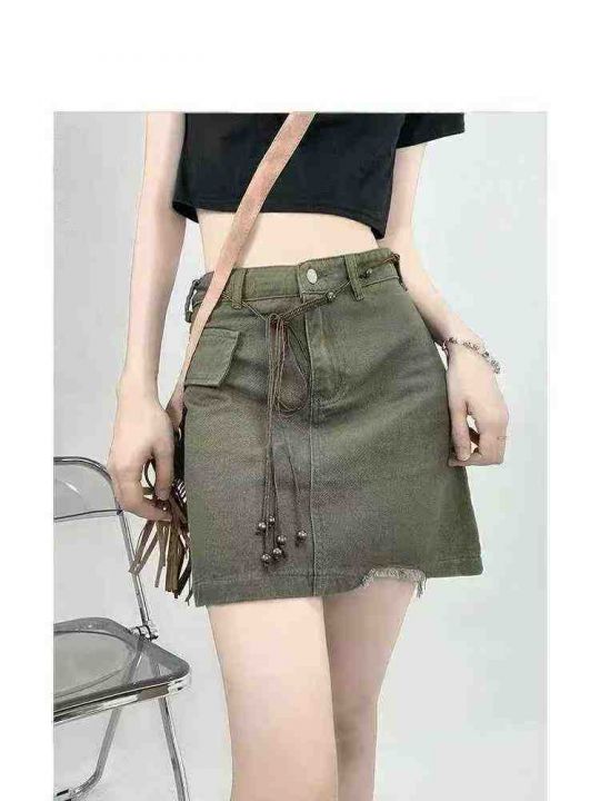☕️美式复古a字军绿色半身裙设计感小众高腰包臀不规则工装牛仔短裙 123条全清8.8元,码数S到XL,有码数清单,独立包装[庆祝][庆祝][庆祝]