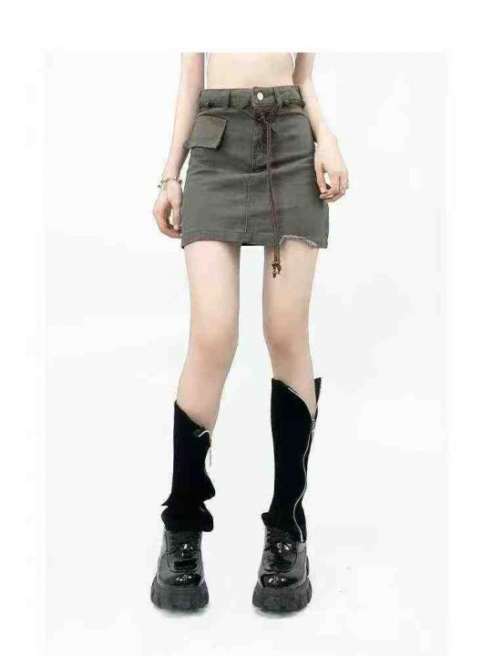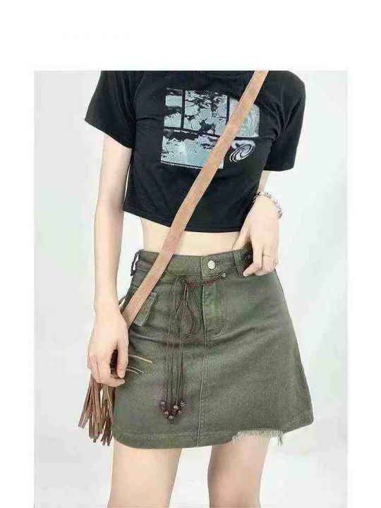 ☕️美式复古a字军绿色半身裙设计感小众高腰包臀不规则工装牛仔短裙 123条全清8.8元,码数S到XL,有码数清单,独立包装[庆祝][庆祝][庆祝]
