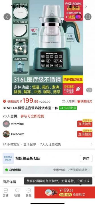 A 1.5升大容量,带遥控本博品牌恒温壶,可热食,温奶...