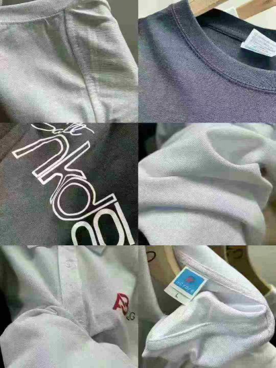 Polo衫和圆领纯棉T恤。总数量799件,尺码s-xxl码,图片两个款式,黑白两色。有的十件一包,有的是独立包装。领包边到肩,做工精细,面料柔软,腾仓库超低价3.9秒杀