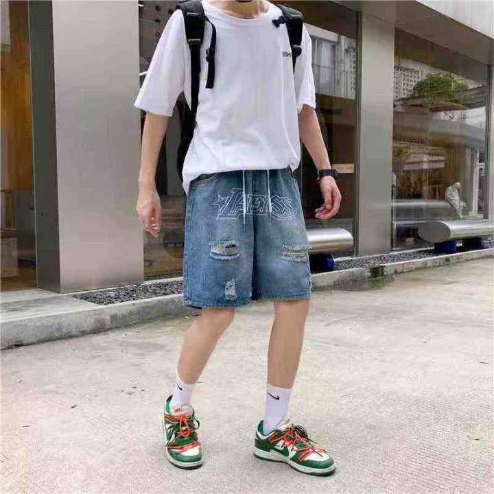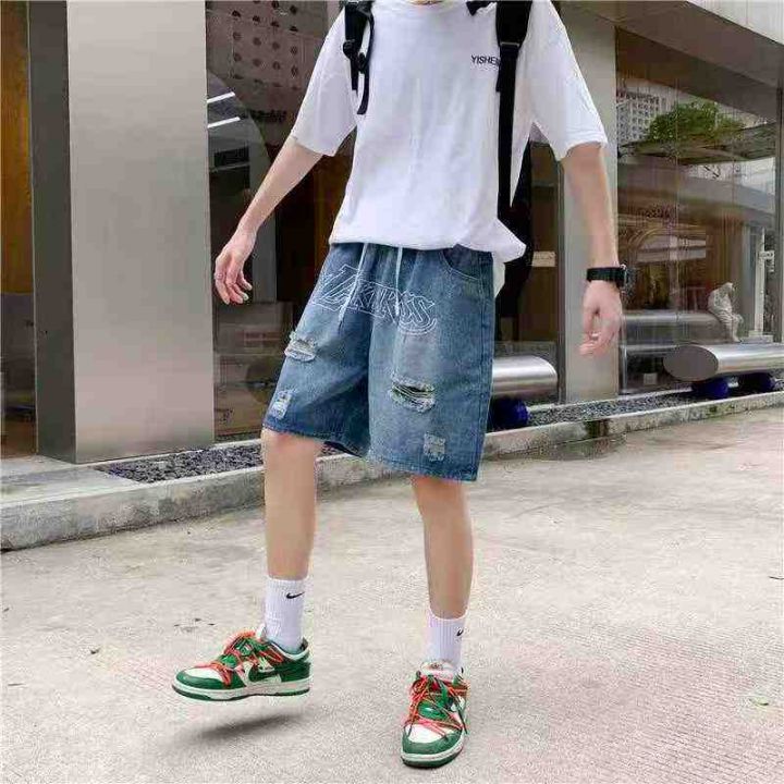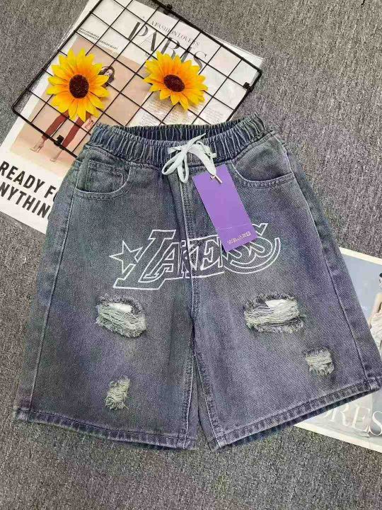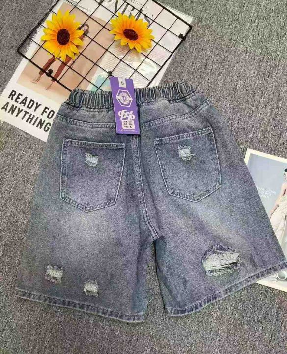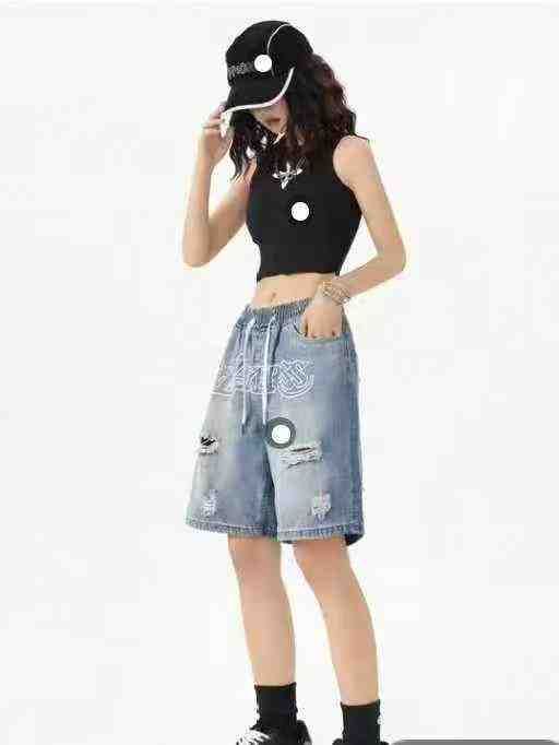 男女同款洗水棉网红爆款松紧腰牛仔短裤,独立包装带吊...
