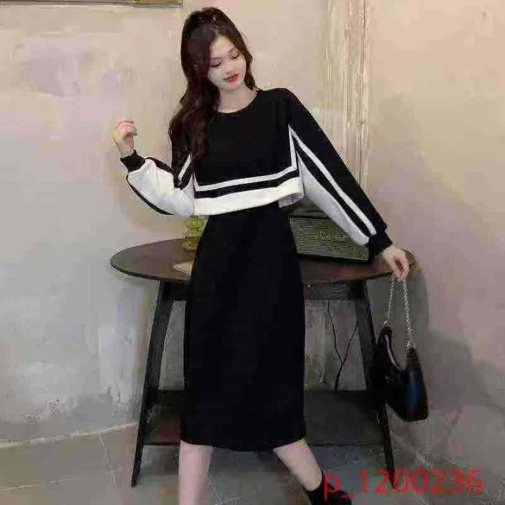 韩版设计感黑白撞色拼接收腰显瘦连衣裙,[爱心]90件左右,码数S-XL,长款为主,穿80-130斤,万佳档口货,原包装️无瑕疵,[666]实体店品质,分货加一 _@_@