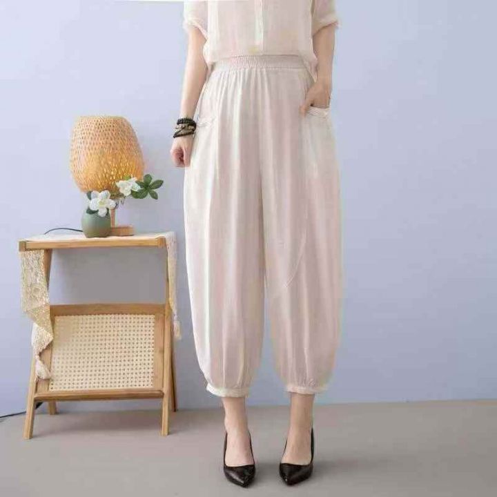 纯色中年妈妈裤棉麻薄款宽松高腰中老年女阔腿裤休闲裤子,数量431件,码数m...