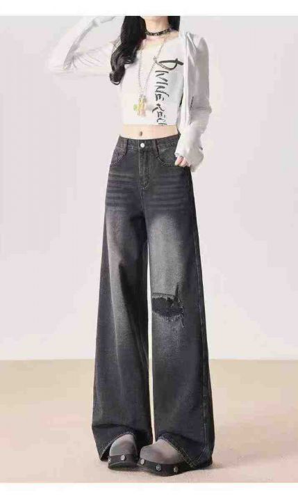 秋季新品黑色甜酷复古高腰阔腿牛仔裤,独立包装带吊牌,码数L--XL码(黄金码...