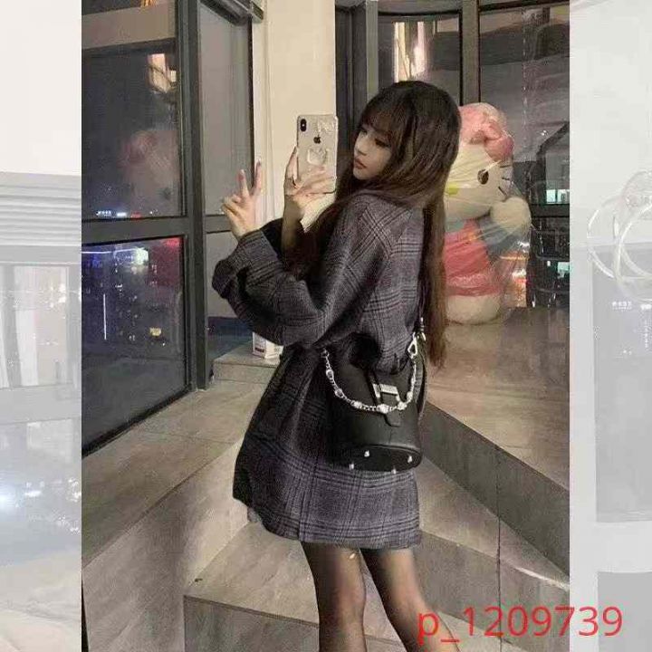 捡漏450件复古格子毛呢大衣女韩版时尚修身气质中长/...