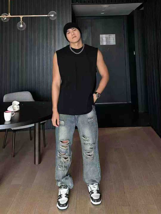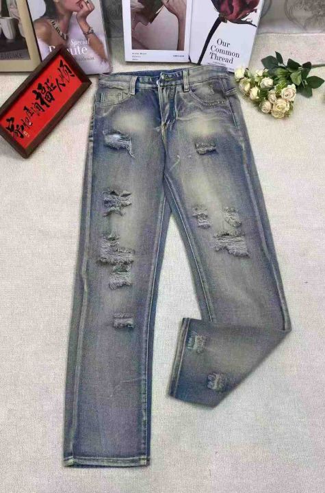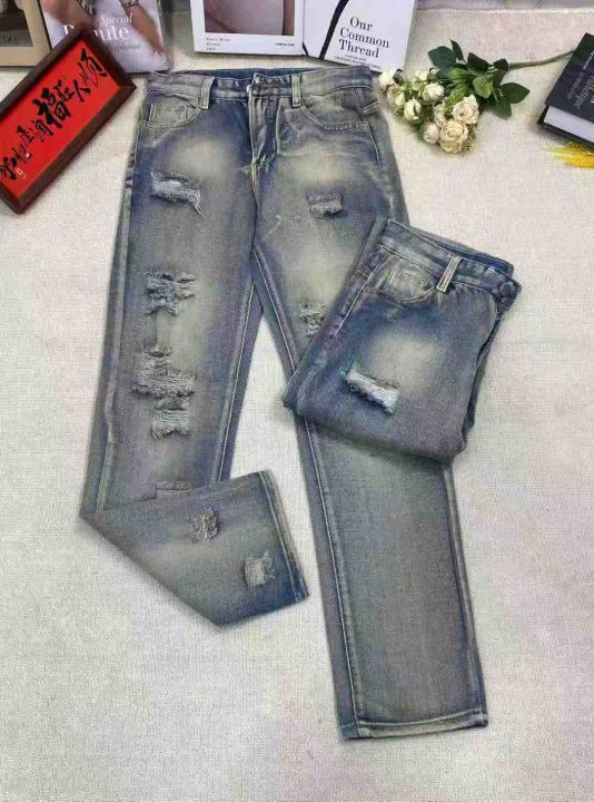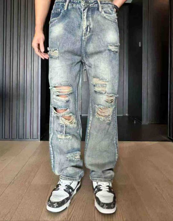 欧美高街潮牌夏季破洞牛仔裤男士ins水洗做旧复古美式宽松直筒长裤,69条独立拉链包装原吊牌,S-3XL码全清9.8
