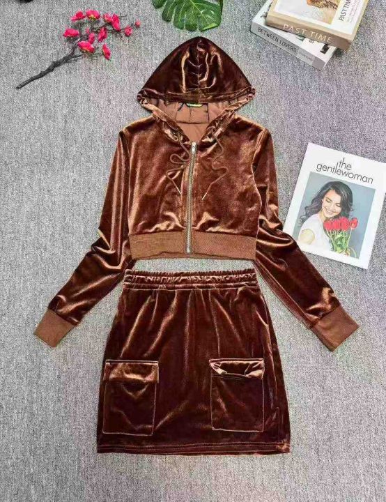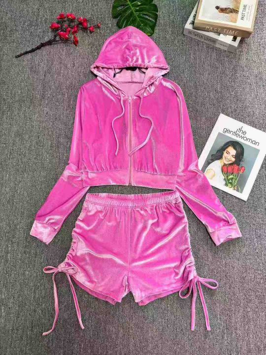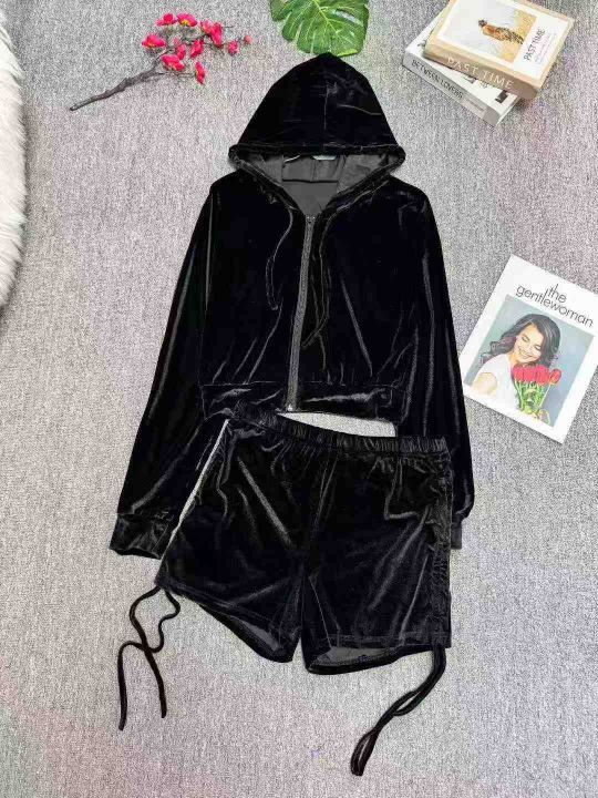 8.8清时尚辣妹金丝绒连帽长袖拉链开衫上衣休闲短裤两...