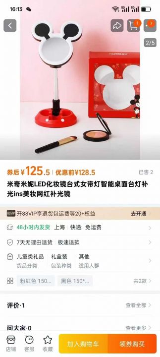 迪士尼正品,带防伪码米奇米妮LED化妆镜台式,智能桌...