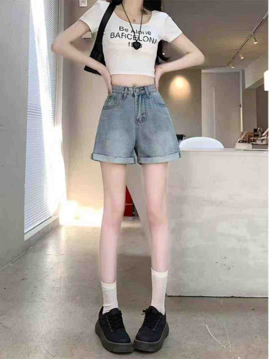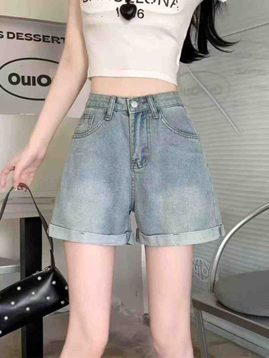 ☕️浅色高腰卷边牛仔短裤夏季新款小个子宽松显瘦a字...