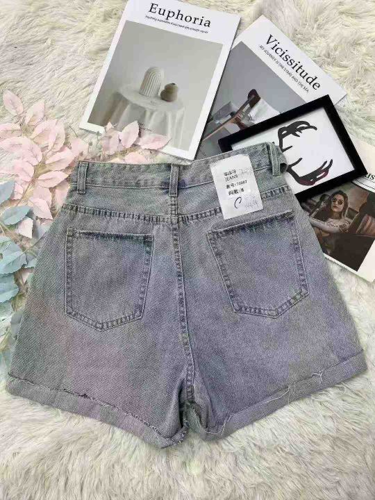 ☕️浅色高腰卷边牛仔短裤夏季新款小个子宽松显瘦a字阔腿热裤110条全清9.9元,码数S M L 独立包装。