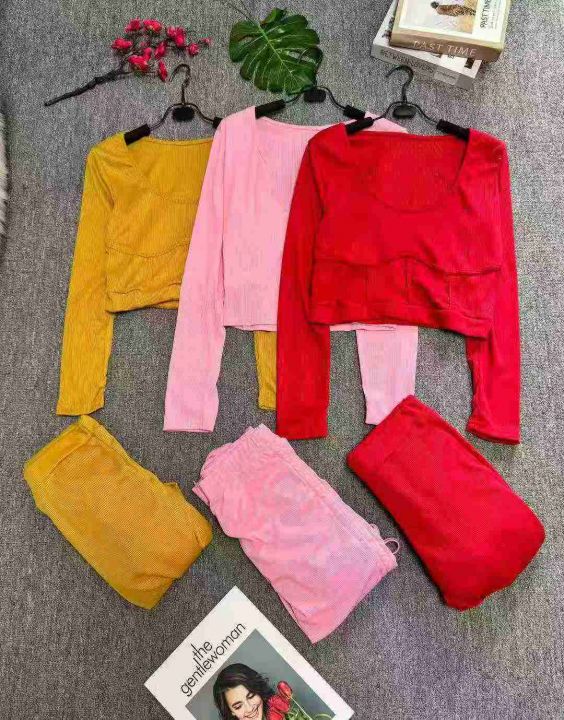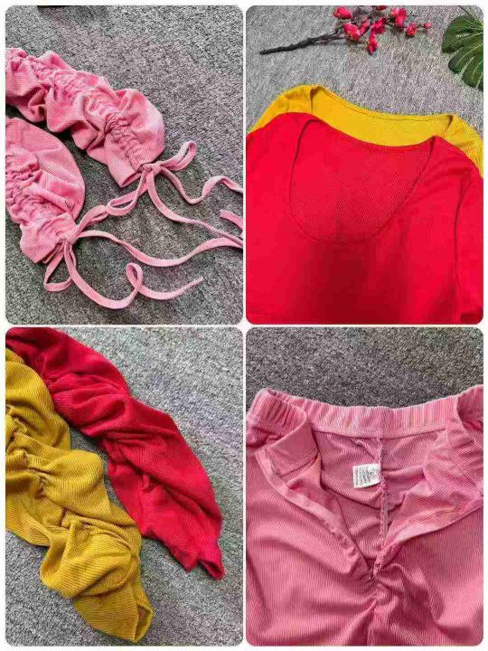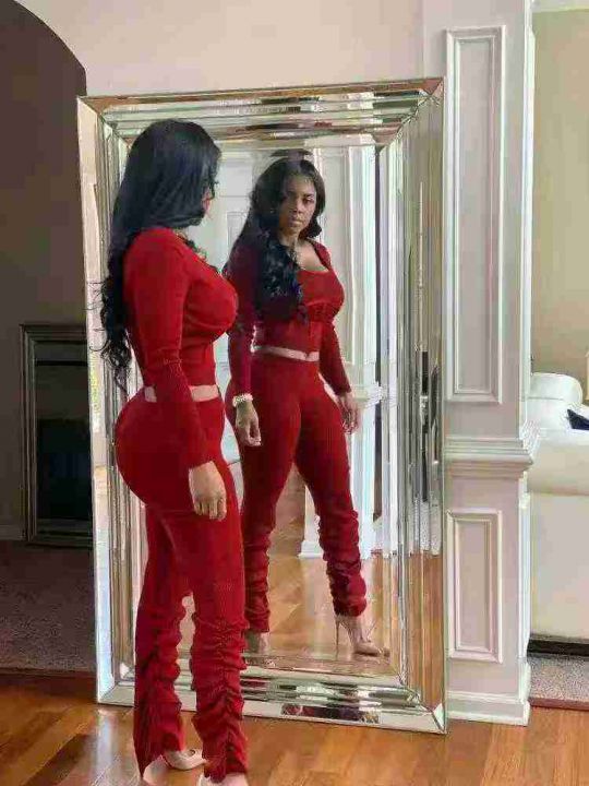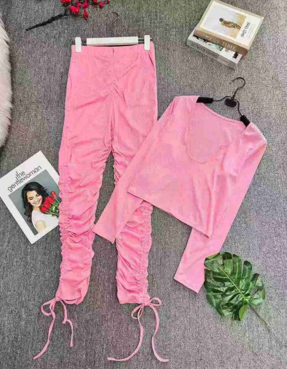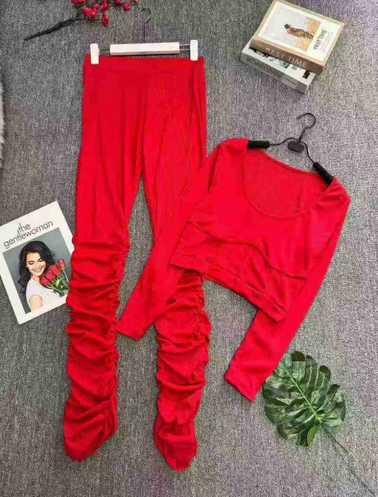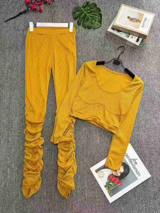 欧美时尚女装新款螺纹针织抽褶运动两件套,数量170套左右,码数S-2XL,高弹力品质好,有独立包装。
