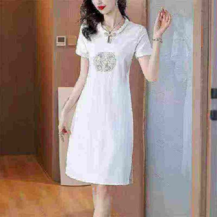 时尚休闲连衣裙女中长款2025年春夏显瘦百搭国风盘扣连...