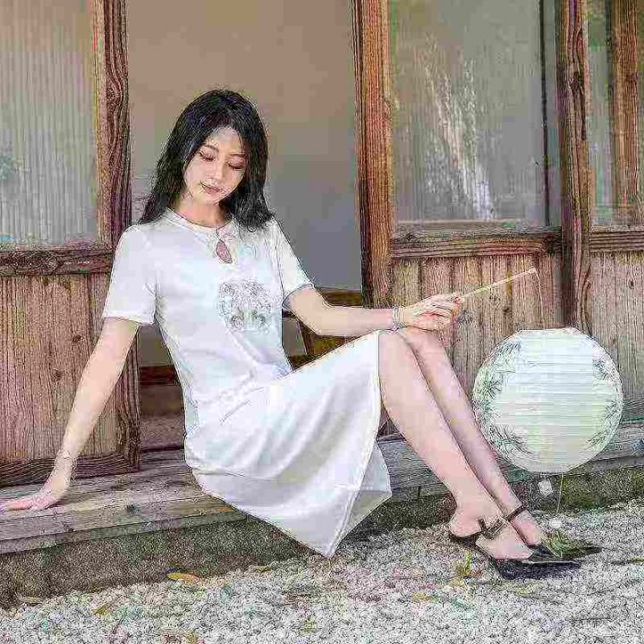 时尚休闲连衣裙女中长款2025年春夏显瘦百搭国风盘扣连...