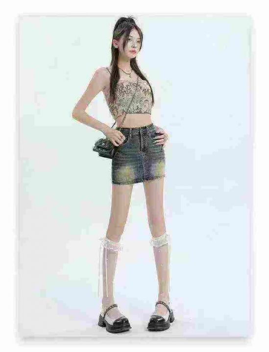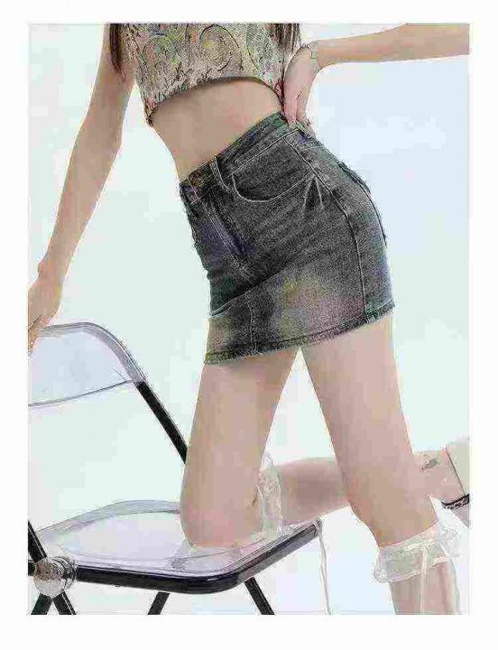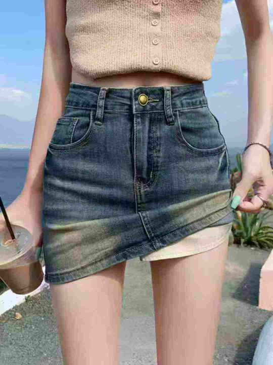 ☕️高弹力美式复古牛仔短裙女新款夏季辣妹显瘦防走光...