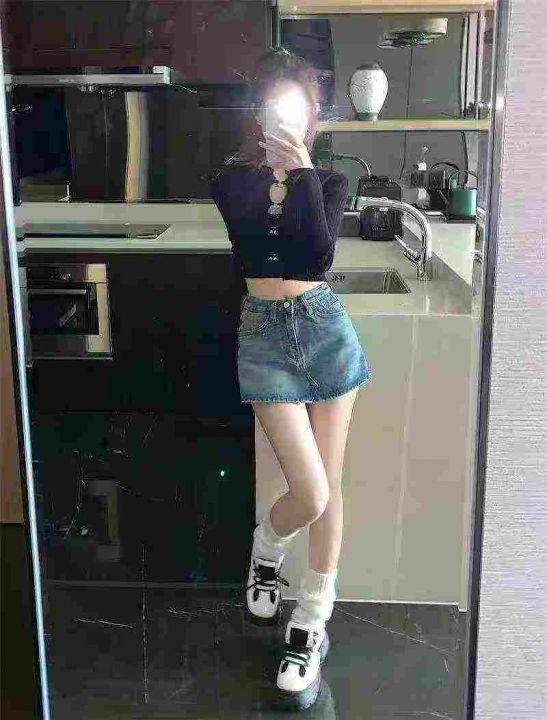 ☕️辣妹防走光牛仔半身裙女新款胖mm大码高腰a字裙网...