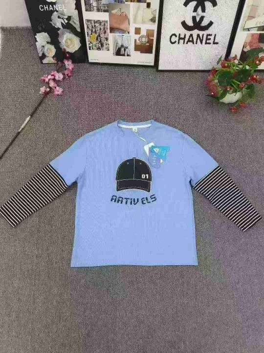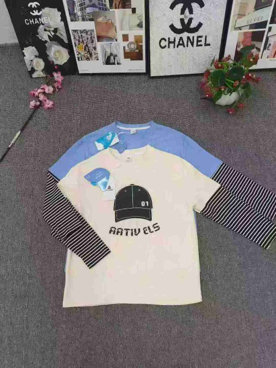 品牌童装2025新款中大童假两件上衣 数量2000件左右 尺码110--160 螺纹棉面料 整款两个色 蓝色居多 独立包装带吊牌 货品整洁质佳!