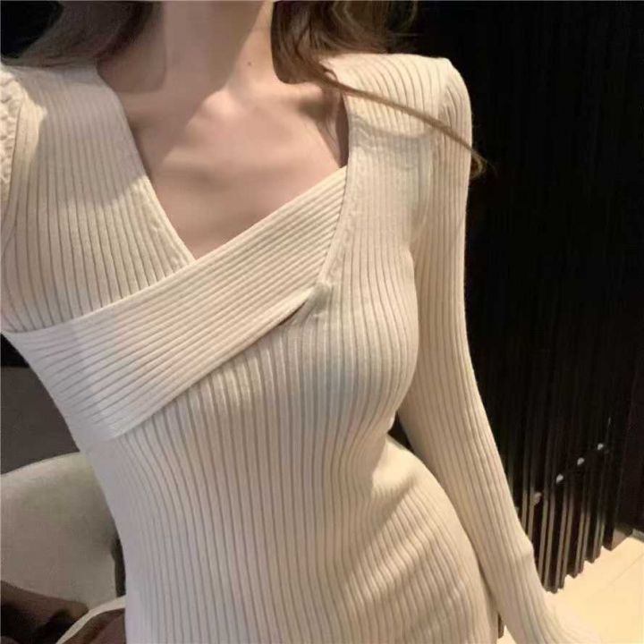 秋冬新款弹力修身显瘦名媛小香风奶甜系穿搭法式毛衣吊带针织连衣裙,独立包...