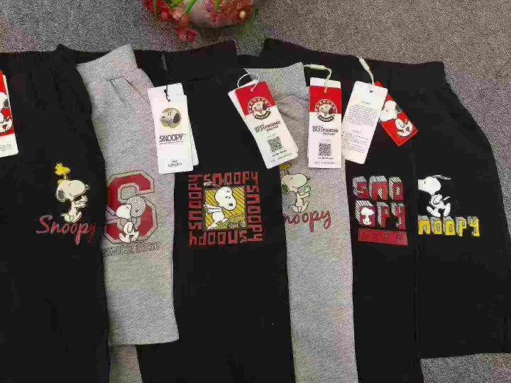 品牌史努比童装夏季新款纯棉松紧短裤,数量1500件左右,尺码110--160,整款两个色,logo很多,独立包装带吊牌,货品整洁质佳