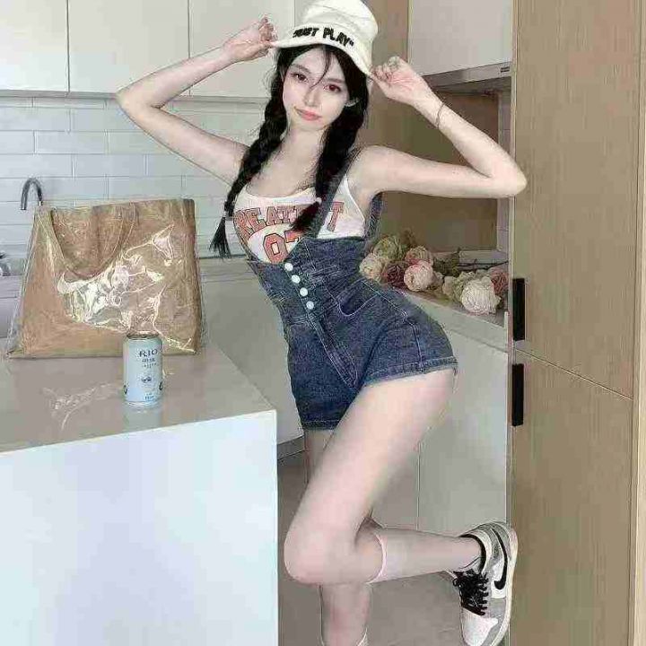 夏季新款靓妹女装弹力修身显瘦牛仔背带短裤,独立包装,可穿80--100斤左右...