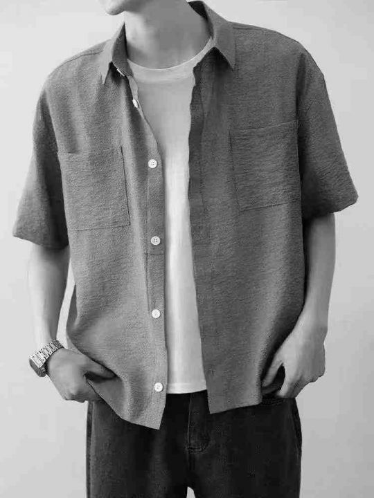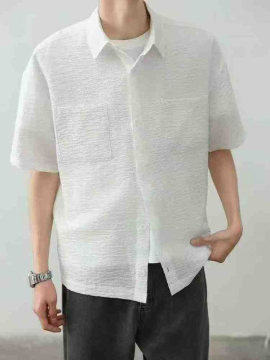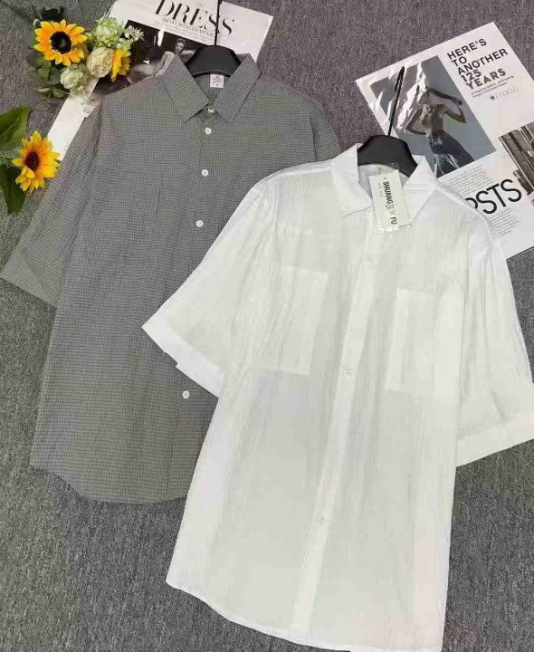 夏季新款日系条纹肌理感短袖衬衫,独立包装带吊牌,码...