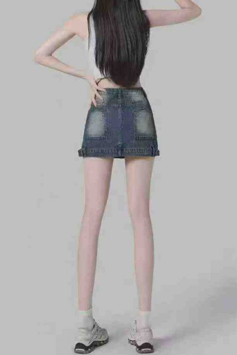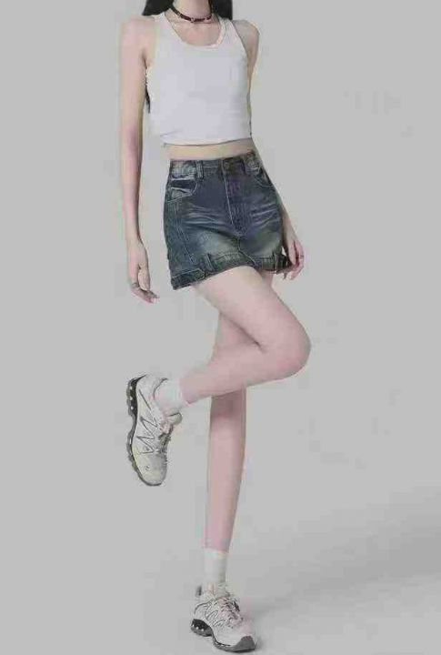 夏季新款辣妹风复古时髦百搭防走光洗水棉牛仔短裙,独...