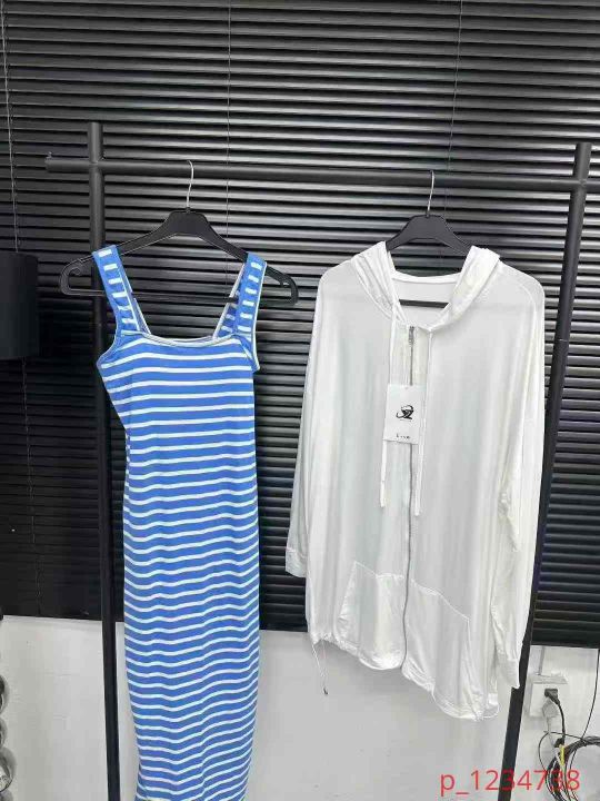 两件套:条纹吊带连衣裙➕连帽外套【8725】散批45一套,50多套全清来谈 _@_@